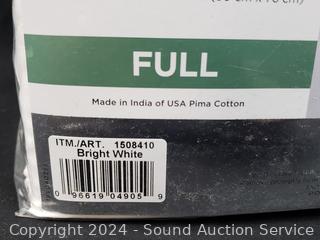 Bright white color. Factory sealed. 1 flat, 1 fitted, 4 pillowcases.
