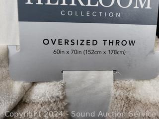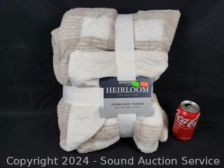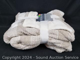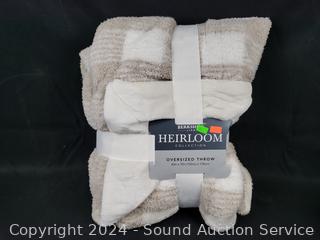 Lot #0291: Berkshire Life Heirloom Collection Beige/White Oversized Plush Throw