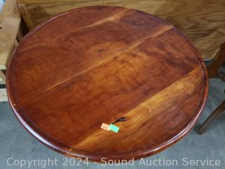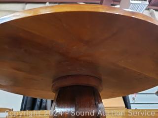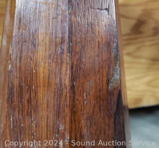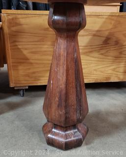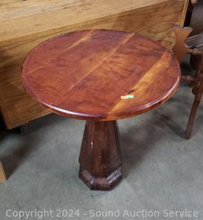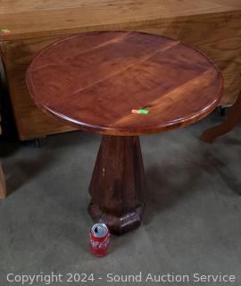 25.5: H x 20.5" Dia. Some scuffs, wear to finish, mainly on the base.