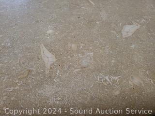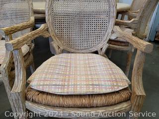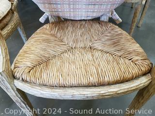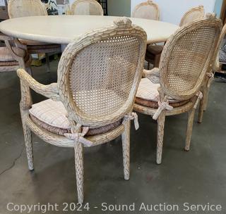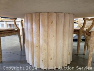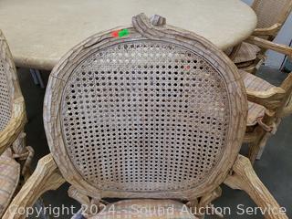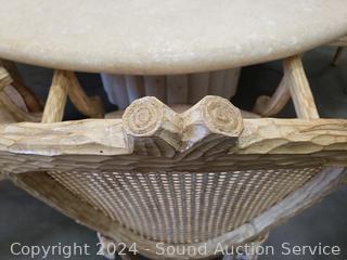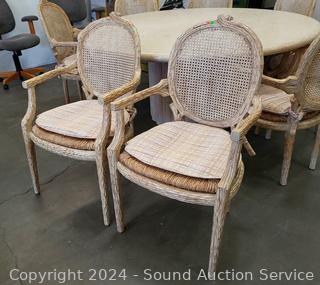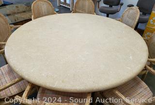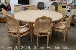 Lot #0002U: Unique Limestone Top Dining Table w/8 Carved Wood Cane Back/Rush Seat Chairs
