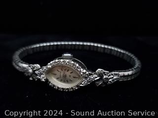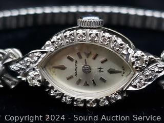Lot #0142: Vintage Hamilton 769 17J Ladies Watch w/14K White Gold & Diamond Case