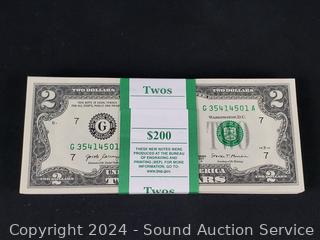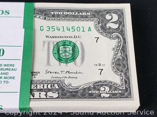 Lot #0072: (100) 2017 $2 Bills in Sequential Order w/Original Bank Wrap