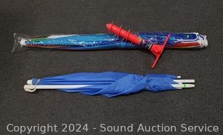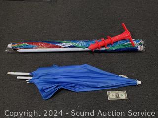 Lot #0048: 2 Beach Umbrellas & Umbrella Anchor