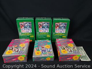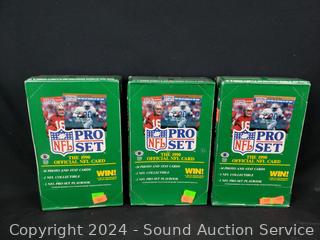Lot #0253:     3 1990 Sealed Pro Set & 3 1991 Pacific Plus NFL Trading Card Box Sets