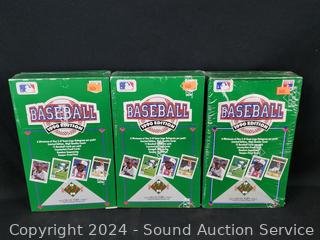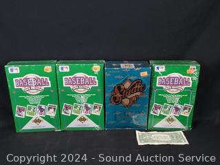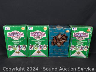 Lot #0265: 3 1990 Upper Deck & 1 1992 Leaf Studio Sealed Baseball Trading Card Box Sets