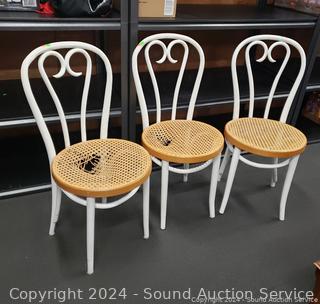 Lot #0349: 3 Cane Bottom White Painted Bent Wood Chairs