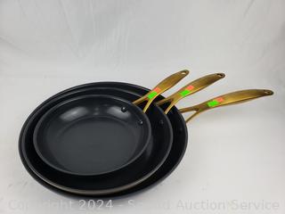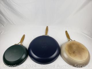 Lot #0328: 3 Green Pan Jewel Ceramic Non-Stick Skillet Set