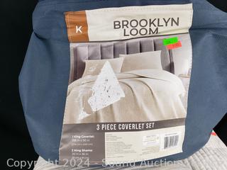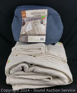 Lot #0304: 3pc Brooklyn Loom Beige King Coverlet Set