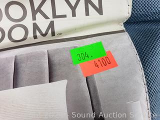 2 shams 20" x 36", 1 coverlet 108" x 98". Don't see any issues.