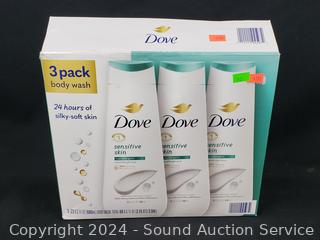 Lot #0343: 3pk Dove Sensitive Skin 23oz Body Wash