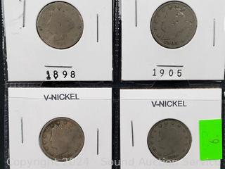Lot #0006: 5 Antique 1883-1909 US V-Nickels