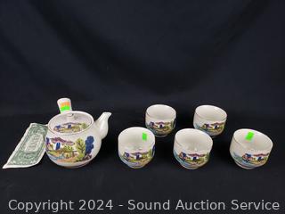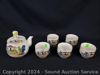 Lot #0058: 6pc Japanese Pottery Kyusu Tea Set