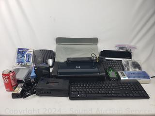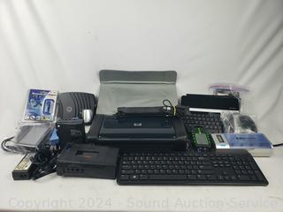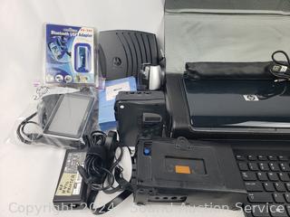 Universal charger, HP H470 Printer, Sony Cassette Recorder, USB keyboard, USB bluetooth adapter, Grundig recorder, Garmin navigation, Eton Scorpion II Solar Survival Radio/Flashlight. Refer to photos for more details.