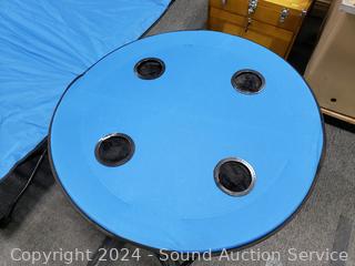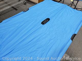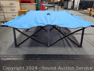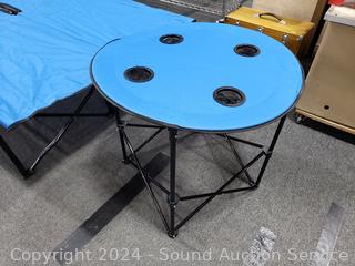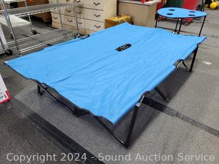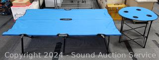 17" H x 75" L x 47" W air mattress frame, 24" H x 28" Dia. table. Light wear from use.