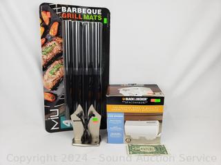 Lot #0163: Knife Sharpener, Under-Cabinet Elec. Can Opener, 3 Grill Mats