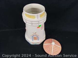 14.5" H x 7.5" Dia. Don't see any makers marks or issues.