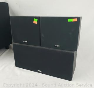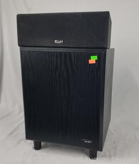 Receiver model VSX-D814. RCA center speaker, 2 bookcase speakers, 2 surround speakers, KLH center speaker & Jensen subwoofer. Receiver has power, appears to be functioning as intended, tested tuner with speakers, all speakers appear to be functioning as intended.