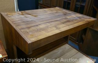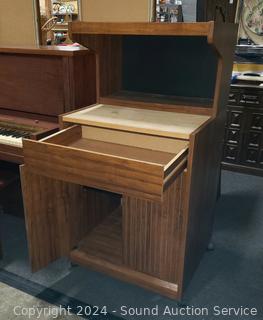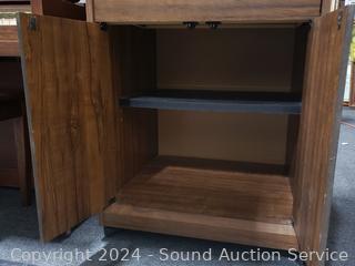 Lot #0040: Simulated Teak Finish Rolling Cabinet