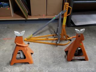 Lot #0120: Tire Bead Breaker & 2 6-Ton Jack Stands