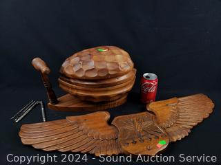 Lot #0116: Walnut, Walnut Bowl w/Mallet, Crackers, Eagle Wings S
