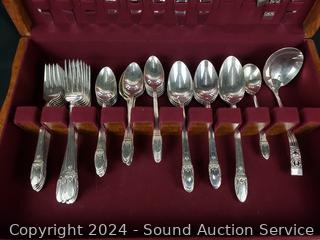 Lot #0127: WM Rogers "First Love" Silver Plate Flatware Set w/Chest