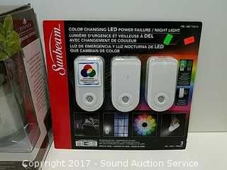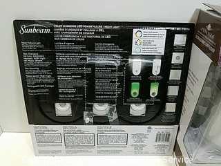 Night lights are by Sunbeam, packages have been opened. Diffuser comes in box and includes power cord (Includes lavender and rosemary mint essential oils).