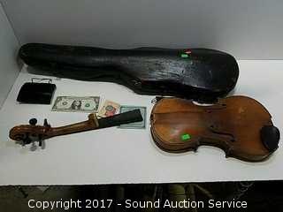 Lot #0117: Antique Violin/Fiddle w/Case - Parts or Repair