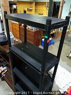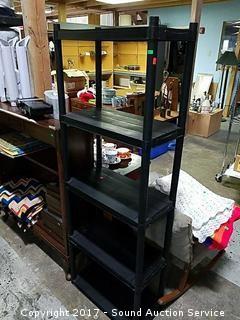 Has 5 shelves. Approx. 24" long, 12" deep, 60" tall.