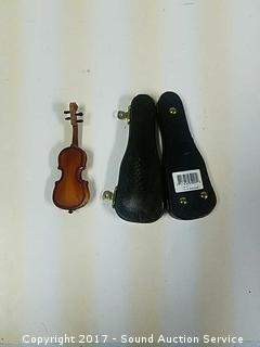 Violins are very detailed, small one comes in case, approx. 5" and 8" long.