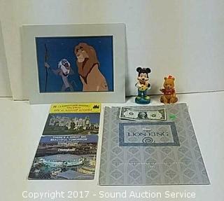 Lot #0294: Disney Figures, 45 LP's & Lion King Lithograph