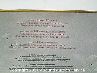 Works! In good condition, has been removed from the box, missing the "Try me" button, but does not affect the function of the wreath.