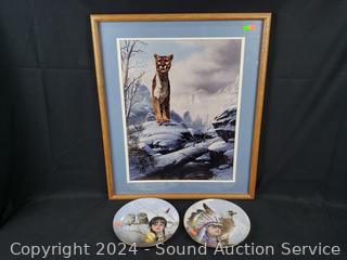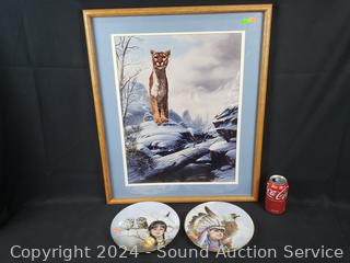 Lot #0291: 2 Native Collectors Plates & Mountain Lion Ltd. Signed Print