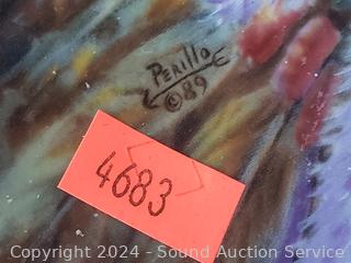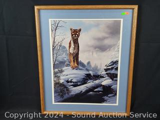 8.5" Plates w/CoA and information printed on the backs. Georgie signed #108/450 Mountain Lion print, 25" x 21".