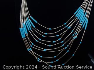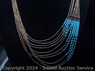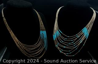 Lot #0115: 2 Native Liquid Silver & Turquoise Necklaces