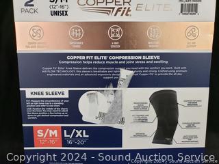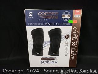 Lot #0200: 2pk Copper Fit Elite Compression Knee Sleeves S:S/M, 12-16"