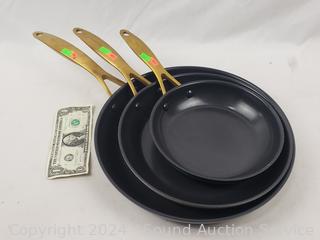 Lot #0233: 3 Green Pan Jewel Ceramic Non-Stick Frying Pans