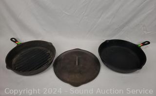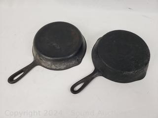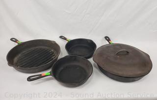 Lot #0100: 4 Cast Iron Skillets w/2 Lids