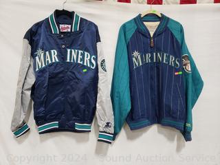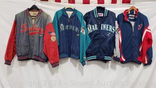 Starter Indian S:L, Authentic Seattle Mariners S:XL, Mirage Seattle Mariners (unsure on the size), Mirage Indians (don't see a size).