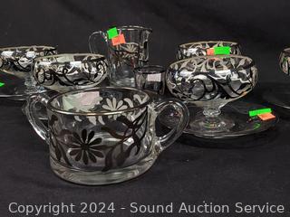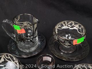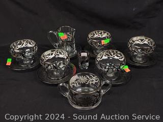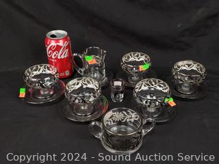 Lot #0193: 5 Silver Overlay Compotes w/Saucers, Cream, Sugar Shot Glass
