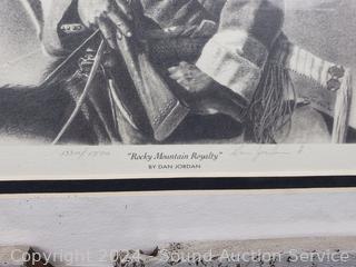 3 Signed Yukie Adams reproduction prints, 12" x 10". 2 signed limited Dan Jordan prints, titled "Guardian to the Stronghold", "Rocky Mountain Royalty", 13.5" x 17".
