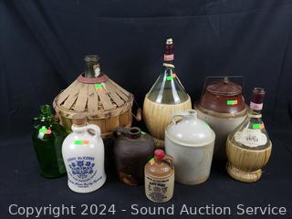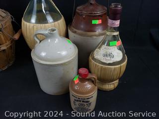 Lot #0067: 8 Vintage Bottles, Whiskey Crocks