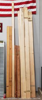 (6) 8ft 2x4, (2) 10ft 1x4 Oak? (4) 69" 4x4, (13) 10ft 1x6 Oak?