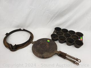 Lot #0159: Cast Iron Griswold Waffle Skillet & Muffin Pan