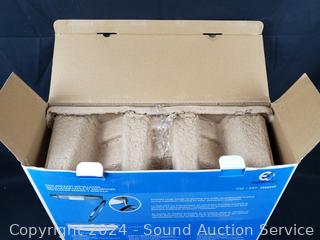 Brushed nickel finish, frosted glass lens, 24W, 1560LM, 4000K color. Appears to be functioning as intended, don't see any issues.
