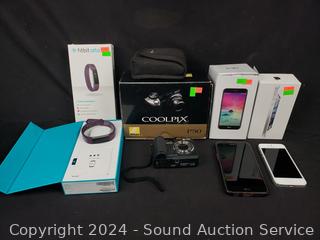 Lot #0241: FitBit Alta, iPhone 5, LG VS-501 Smart Phone, Nikon Coolpix P50 Digital Camera