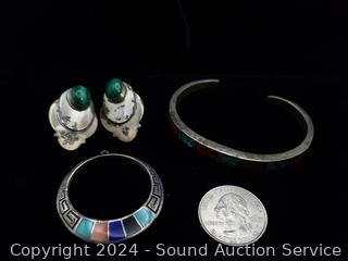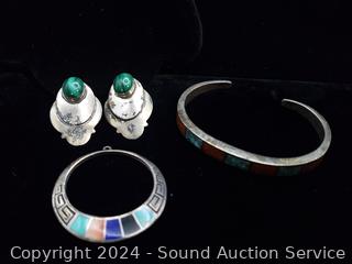 Lot #0113: native Sterling Cuff Bracelet, Earrings & Pendant