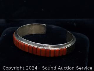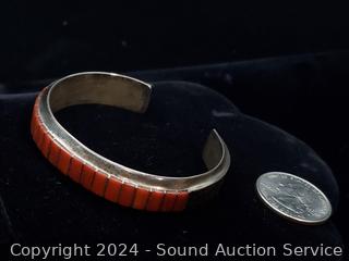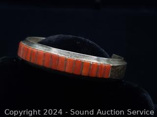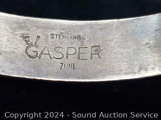 Lot #0112: Signed Gasper Zuni Native Sterling Inlayed Cuff Bracelet
