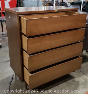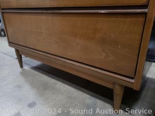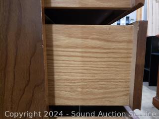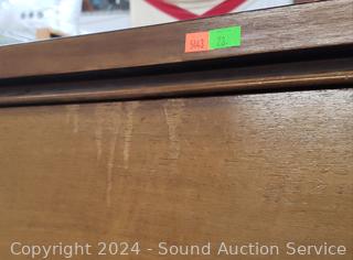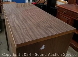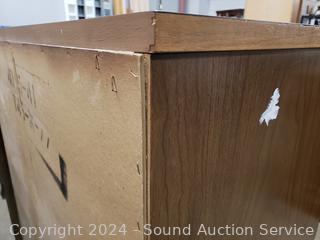 Laminate top, wood fronts. Some minor scuffs. 42" H x 36" W x 18" D.