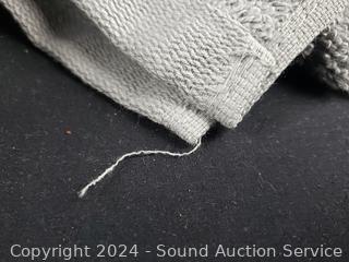 1 bath towels 30" x 54", 2 washcloths 13" x 13", 2 hand towels 16" x 30". A few minor snags, loose threads, don't see any other issues.