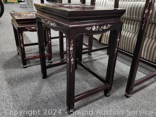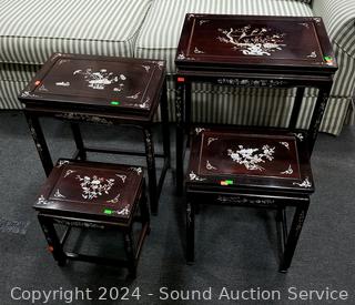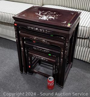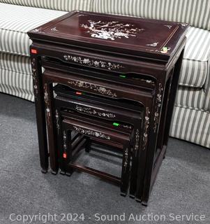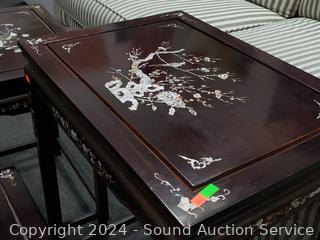 Lot #0023: Mother of Pearl Inlaid Rosewood? Asian Nesting Table Set